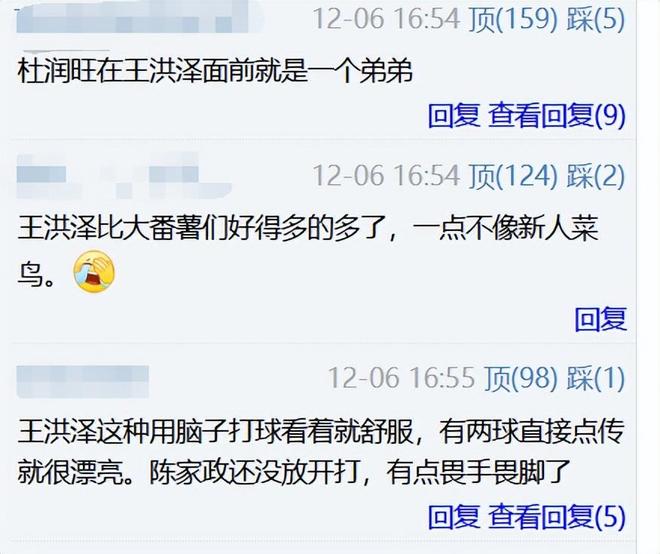 能理解广东队球迷的心情,正所谓有对比才有差距,本场比赛王洪泽之所以会让广东球迷看的如此“如痴如醉”,除了他的确打的好之外,还可能要归功于杜润旺的衬托。