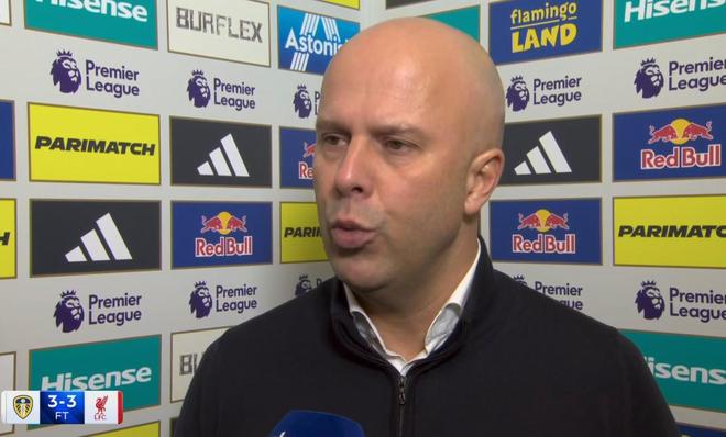 英超第15轮,利物浦客场3-3战平利兹联,赛后,红军主帅斯洛特接受了天空体育的采访。