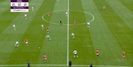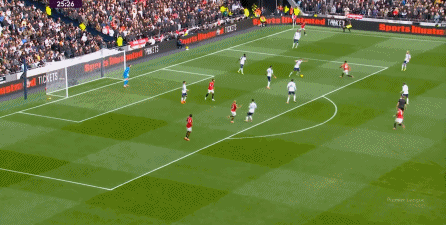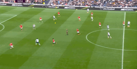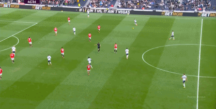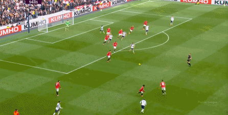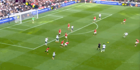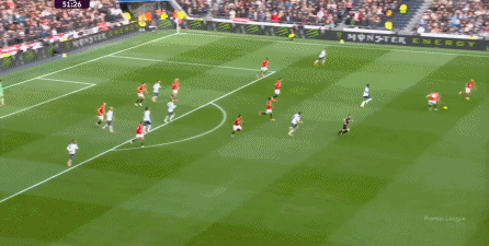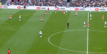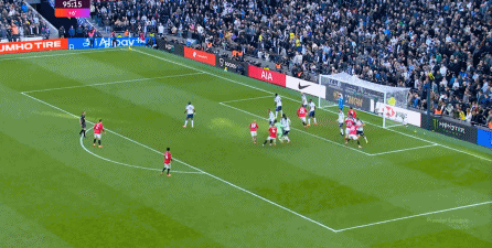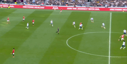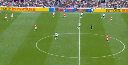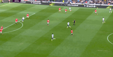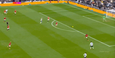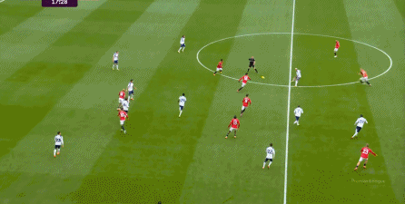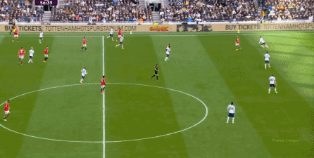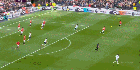 于是在下半场回来之后,热刺确实提高了进攻强度,出脚的时机大大提前,开始将压力直接甩到曼联后卫的身上: