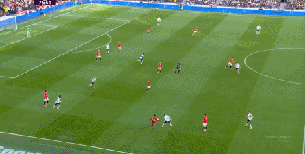 但考虑到身后的卢克-肖和多尔古都在技术上存在短板,这一侧其实更需要边锋的回撤拿球,但姆贝乌莫在这一环节显然没有库尼亚打在这个位置上那么自然,所以打不上去的时候依然不少: